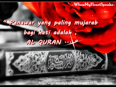 " Makanan yang terbaik bagi hati adalah IMAN , dan penawar yang paling mujarab adalah AL QURAN "